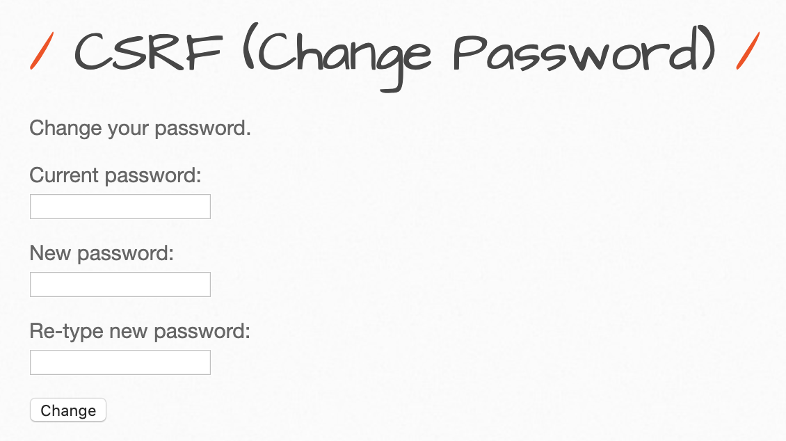 Cross-Site Request Forgery(CSRF) 는 공격자가 서버에서 실행되는 악의적인 스크립트/파일을 업로드하면, 사용자가 이를 실행하면 공격자 대신 웹 서버에게 악의적인 요청을 전송하는 취약점이다. CSRF 를 통해 악의적인 패스워드 변경을 수행해보자.