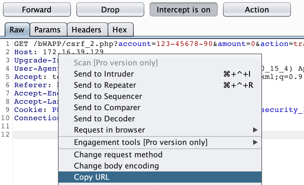 송금 요청 패킷을 잡아 url 을 복사한다.