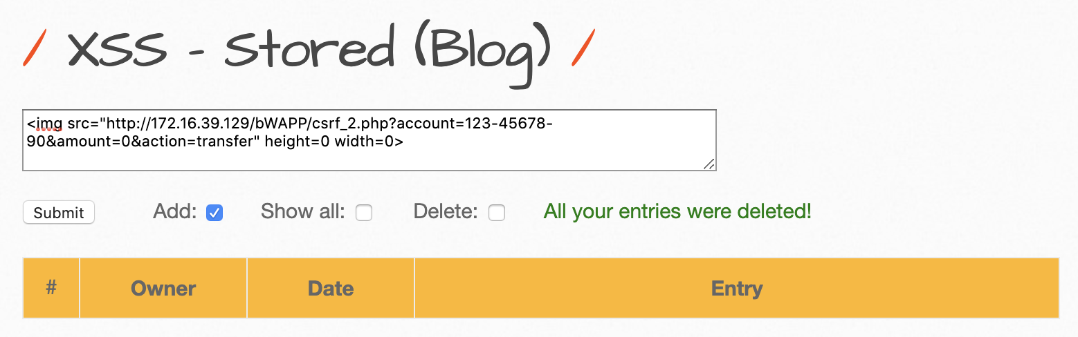 위와 같이 img 태그를 이용하여 게시판에 글을 작성한다. 해당 글은 height 과 width 를 0 으로 설정했기 때문에 내용이 보이지 않는다.