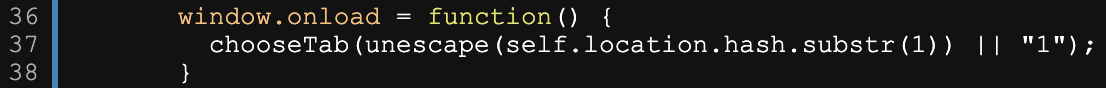self.location.hash.substr(1) 은 url 의 # 부분에 있는 값을 가져온다. 따라서 url 에 값을 입력하게 되면 chooseTab() 을 통해 화면에 출력할 수 있다.