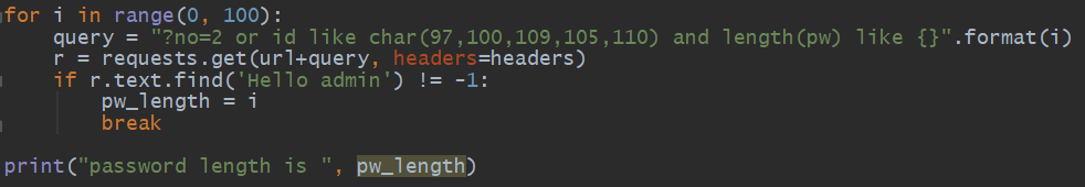 1. admin의 패스워드 길이를 알아낸다. (Python 코드)