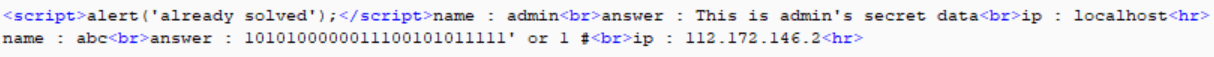 이미 해결되었다고 나오고 answer 값에 This is admin's secret data 라는 값이 출력되었다.