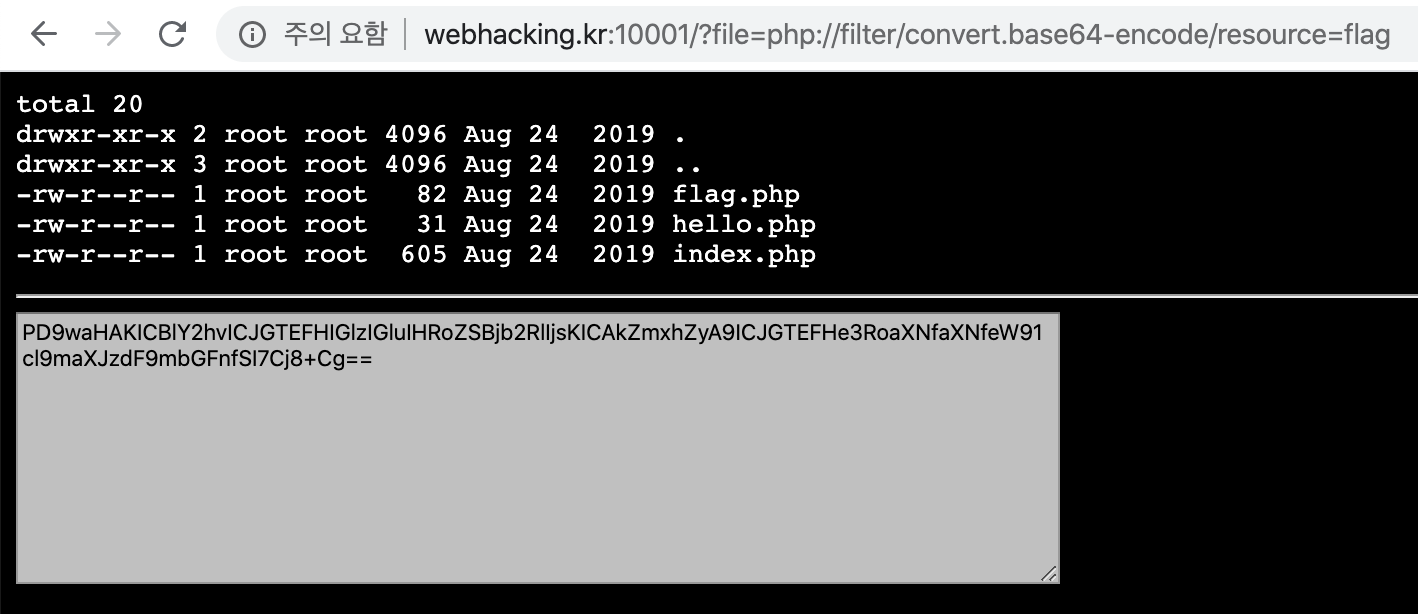 PHP Wrapper 의 여러 wrapper 중 이번 문제에서는 filter 를 사용해야 한다.