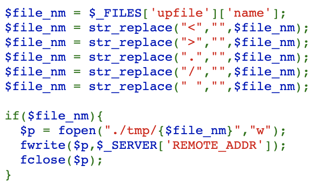먼저, time() 함수를 통해 시간값을 받아와 파일을 만들고 내용에는 127.0.0.1 이라는 값을 넣어주고 있다.