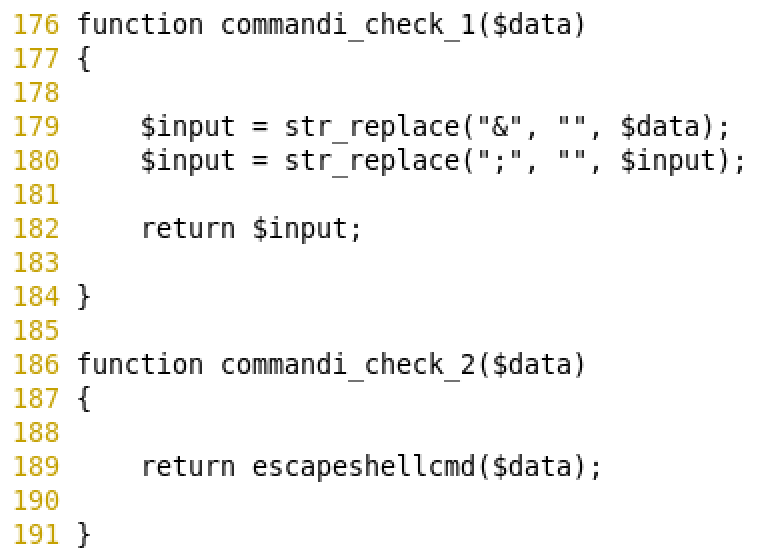 high level 의 commandi_check_2() 함수에서는 escapeshellcmd() 함수를 사용하고 있다. 이 함수는 메타문자를 막는 함수이다.